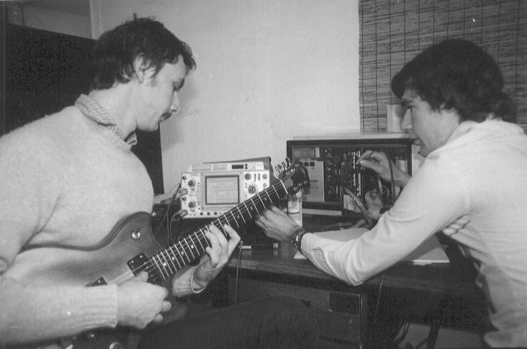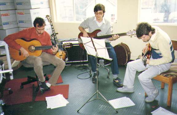 ![]() | As almost everyone who worked at Fairlight were musicians, we often enjoyed lunchtime concerts in the loading dock. Here we have a guitar trio of Karel, Tom Stewart and Charles Murray |