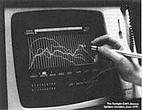 ![]() | The Lightwriter: a product that never made it to market. It was a word-processor that used the light-pen for text manipulation. A forerunner of today's mouse-driven products, but too far ahead of its time. Note the dual 8-inch floppies - 128Kbytes each. |